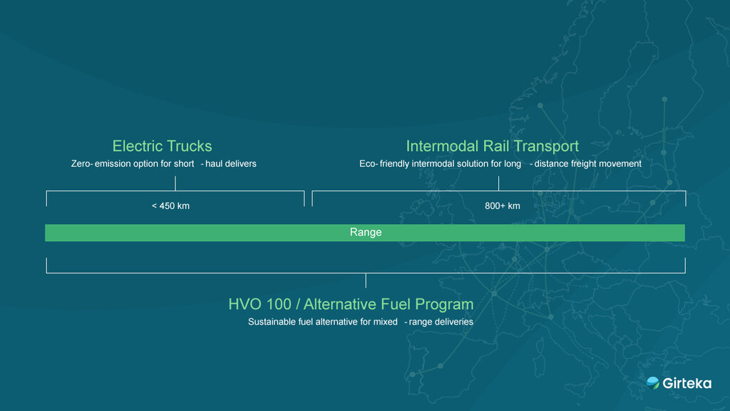 In 2024, a collaboration with a German pharmaceutical partner allowed Girteka to plan, implement and test the effectiveness of Electric Vehicles (EVs) in reducing emissions within pharmaceutical logistics.